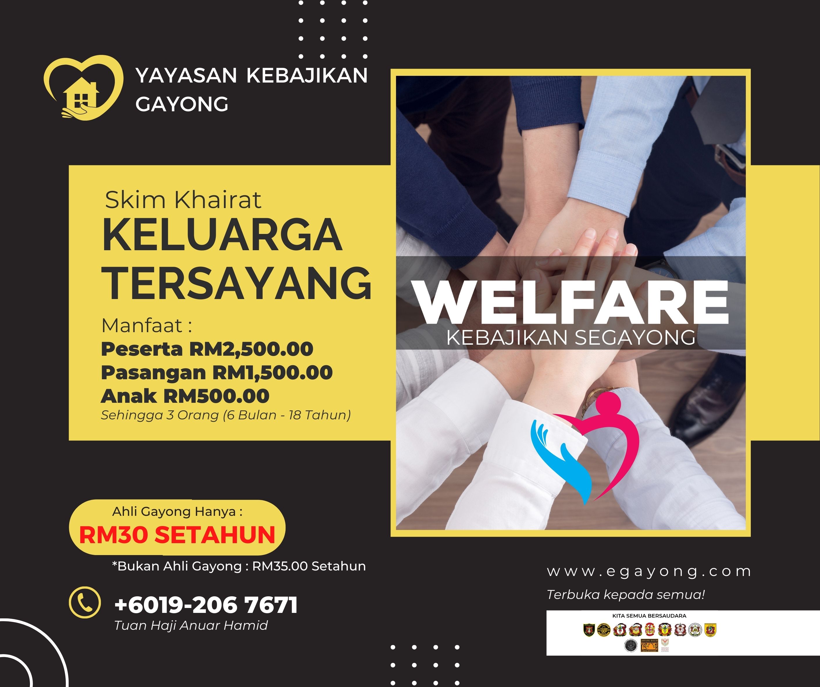 Skim Khairat Keluarga Gayong Tersayang ini adalah salah satu inisiatif Yayasan Kebajikan Gayong Malaysia dengan kerjasama dengan Khalifah Group untuk dijadikan salah satu Sumber Kebajikan Anak-Anak Gayong serta Guru-Guru Gayong yang mendaftar program atau skim ini dan Sekretariat Direktori Komuniti e-Gayong adalah sebagai platform penyebaran maklumat sahaja.